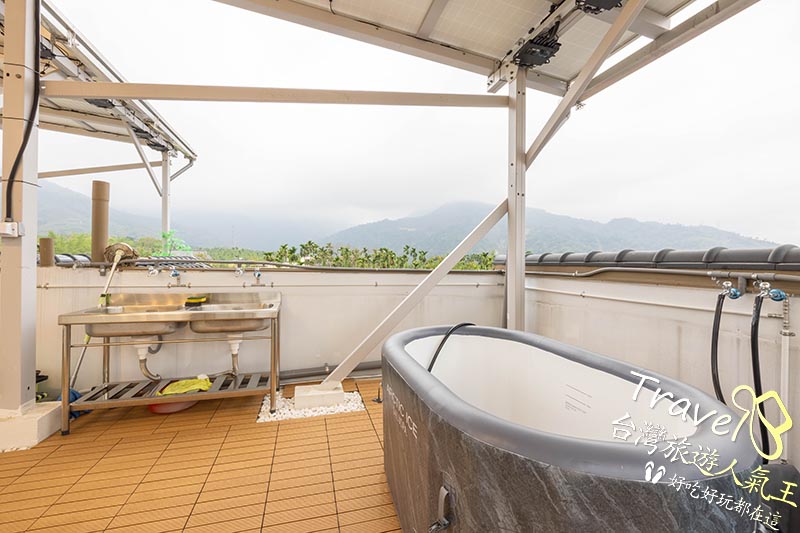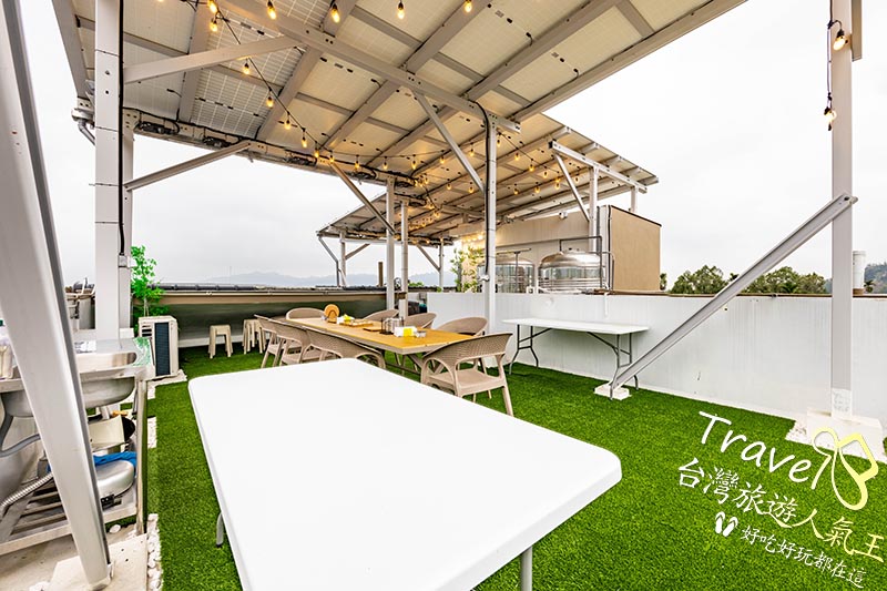 白晝可遠眺中央山脈延伸出的蒼翠輪廓,入夜後,暖色調燈串與山間微風構築成最理想的社交場所。
